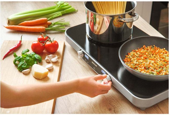 S tímto dvouplotýnkovým sklokeramickým vařičem SmoothCook SCP 2803BK s jednoduchým ovládáním pomocí otočných knoflíků, můžete předvést své kuchařské umění kdekoliv na cestách. Díky výkonu 2 200 W + 1 300 W můžete připravit jakékoliv jídlo, které vás napadne, a to klidně na čundru nebo u vody. Spotřebič SmoothCook je lehce přenosný, skladovatelný a svými rozměry se vejde skoro kamkoliv.