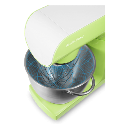 Takzvaný Multi-motion drive efekt, neboli planetární systém hnětení, míchání a šlehání, má oproti jiným systémům velkou řadu výhod. Vzhledem k tomu, že nástavce rotují jednak kolem své osy a zároveň kolem obvodu mísy (tedy kolem osy převodovky), je zaručeno bezezbytkové a dokonalé promíchání obsahu mísy. Můžete si tedy být jisti, že se do potřebné konzistence zpracuje 100 % surovin a že dojde k úplnému promísení všech ingrediencí.