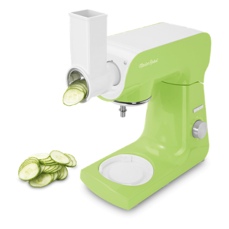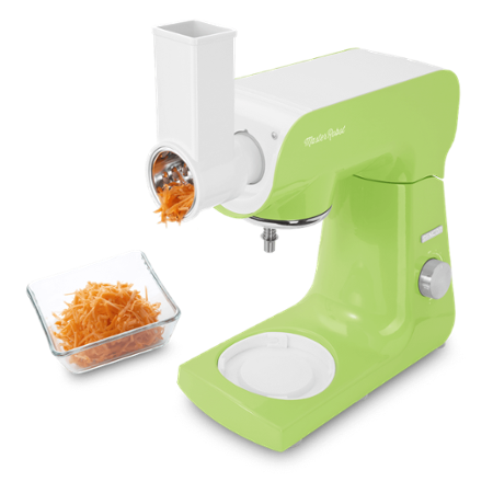 Kráječ a struhadlo se třemi vyměnitelnými nástavci pro hrubé, jemné a plátkové strouhání. Snadno si s ním poradíte například s přípravou zeleninových salátů, bramborových chipsů nebo se strouháním ořechů.