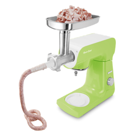 Mlýnek na maso se dvěma mlecími disky – hrubý (8mm) a jemný (3mm) – schopný umlít jakékoli maso přesně na konzistenci, kterou pro daný pokrm potřebujete.