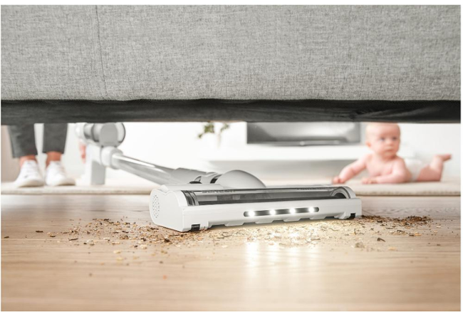 Zařízení je opatřeno výkonným 250W inovativním digitálním motorem. Spolehnout se však můžete i na nízkou hmotnost a jednoduché ovládání vysavače. Při úklidu jistě oceníte snadno odnímatelnou ruční jednotku. Díky Li-Ion baterii 21,6 V/2 200 mAh je zajištěn na jedno nabití až 45minutový úklid. Dobití trvá následně 4,5 hodiny.