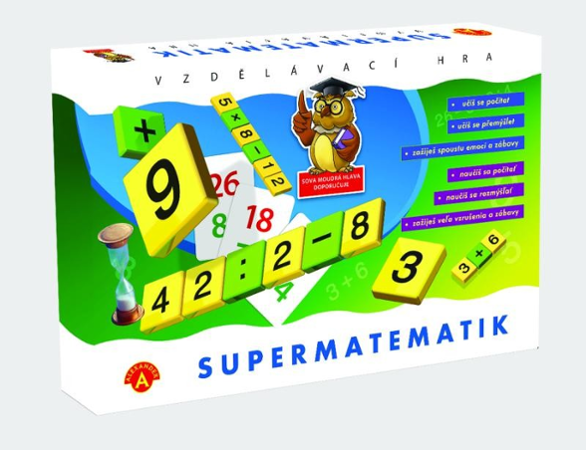 Supermatematik je vzdělávací hra ze série Sova Moudrá hlava pro 2 - 4 hráče.