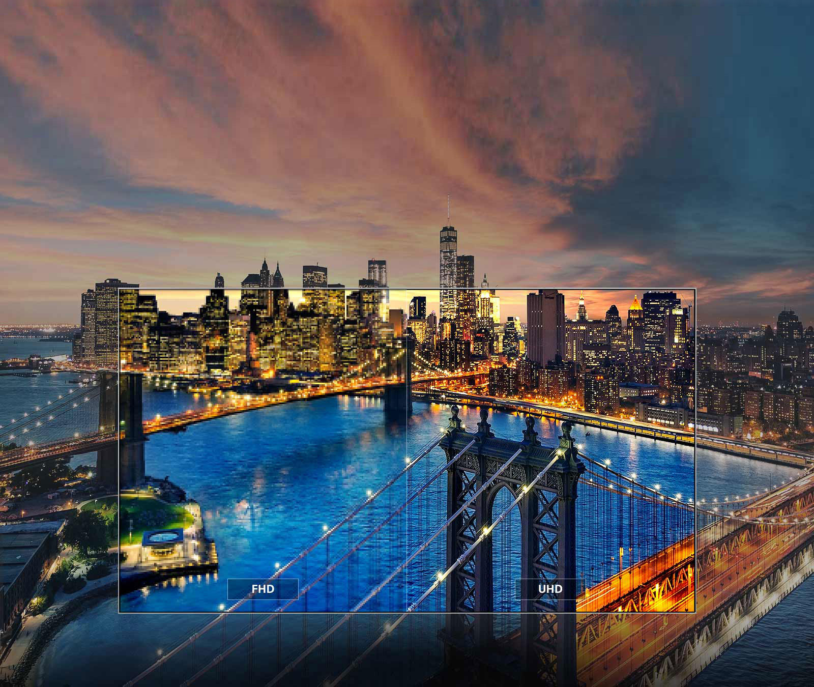 Čím vyšší je rozlišení, tím dokonalejší jsou detaily obrazu. LG UHD TV nabízí čtyřikrát vyšší rozlišení než Full HD TV. To znamená, že získáte 4krát větší ostrost.