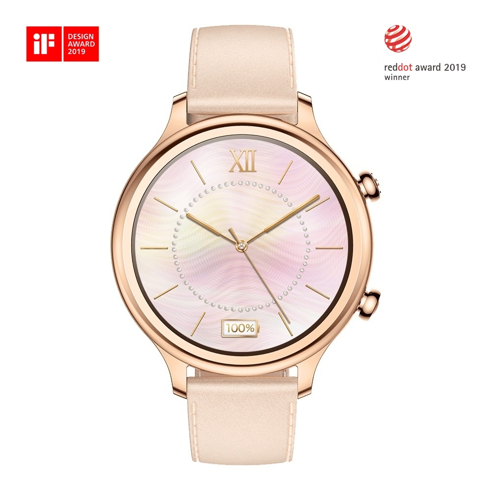 Pásek z pravé kůže v kombinaci s pouzdrem z nerezové oceli zdůrazňují funkčnost bez kompromisů. Vítěz prestižních cen iF Design Award 2019 a Red Dot Design Award 2019 nabitý chytrými funkcemi pro sledování vašeho zdravotního stavu a výkonu v průběhu celého dne. Digitální svět v jeho nejkrásnější formě.