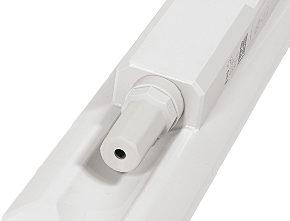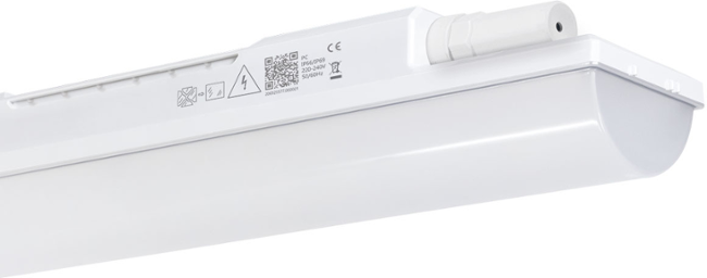 Plastové průmyslové LED svítidlo vhodné i do venkovních prostor, s difuzorem z translucentního polykarbonátu.